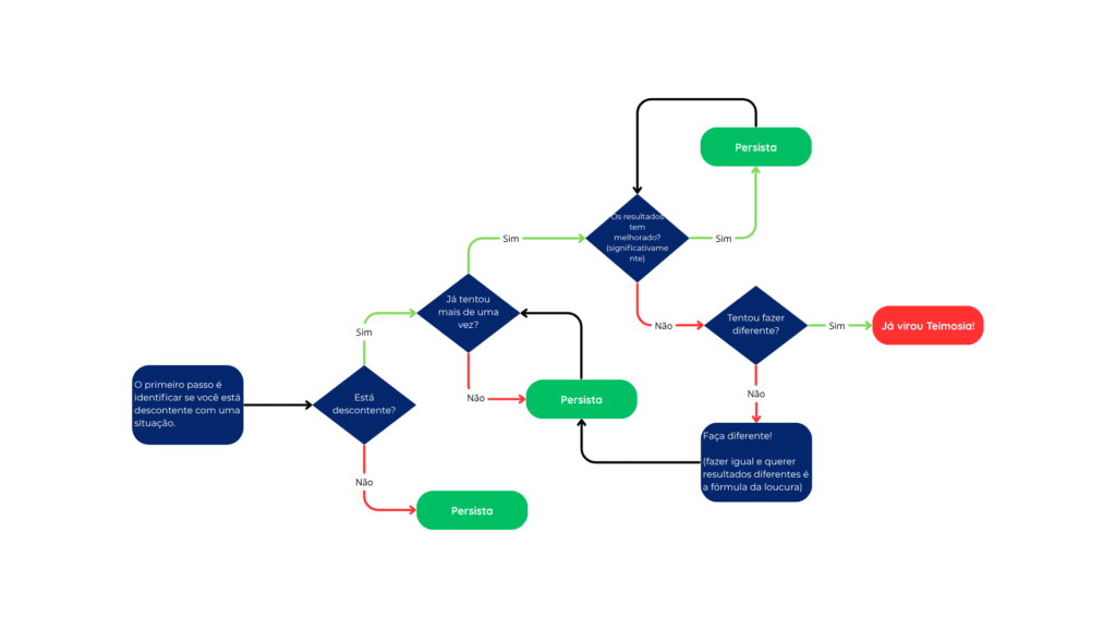 Existe um comportamento negativo que muitas vezes se disfarça de persistência: a teimosia. Ela é o apego cego a um método, mesmo quando as evidências mostram que ele não leva a lugar nenhum. A diferença entre persistência e teimosia está exatamente aqui.